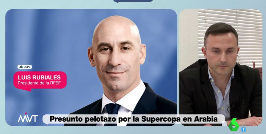 Cristina Pardo e Iñaki López entrevistan en Más Vale Tarde al director de Comunicación de la RFEF, Pablo García Cuervo, a razón de los detalles del contrato que firmó la Federación de Fútbol y Piqué para el traslado de la Supercopa a Arabia Saudí.