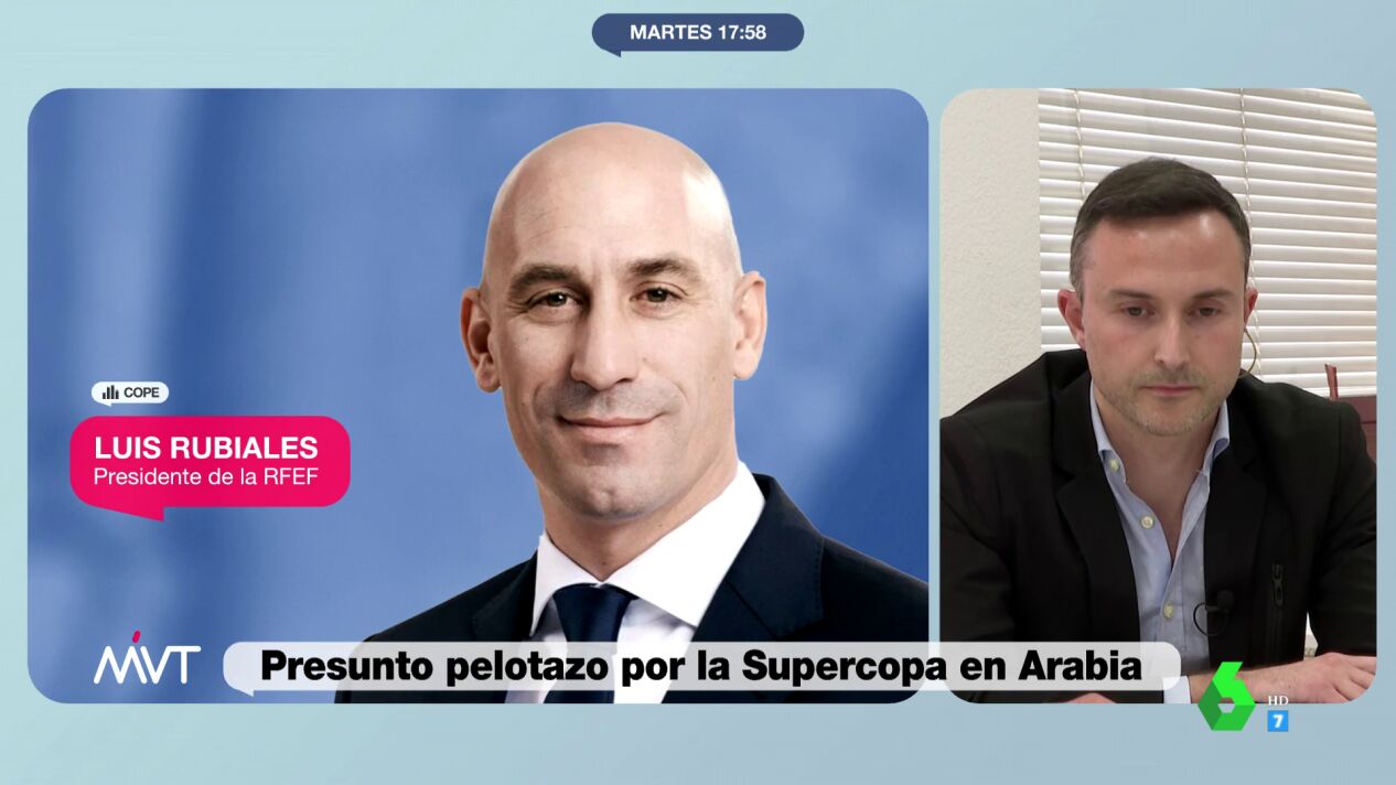 ¿Ha mentido Luis Rubiales sobre los detalles del polémico acuerdo para el traslado de la Supercopa a Arabia Saudí? Es la pregunta que Cristina Pardo ha realizado al director de Comunicación de la Real Federación Española de Fútbol (RFEF), Pablo García Cuervo, que lo ha negado rotundamente: "Cuando se le pregunta si la Federación paga algún tipo de comisión a Kosmos dice que no, en este caso es Kosmos el que tiene que decir el acuerdo que hay con Arabia Saudí".