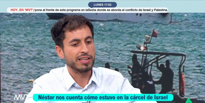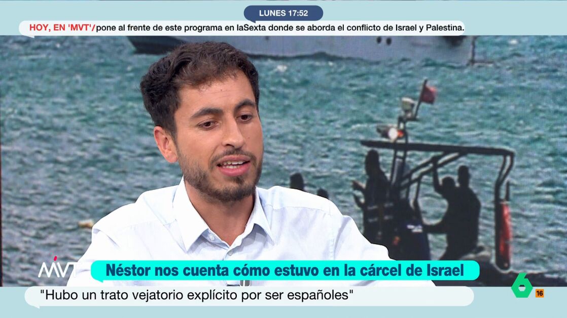 Néstor Prieto, uno de los periodistas españoles detenidos por Israel tras el asalto a la flotilla que llevaba ayuda humanitaria a Gaza, relata en Más Vale Tarde el "trato vejatorio" que él y sus compañeros recibieron durante su detención por parte de las autoridades israelíes.