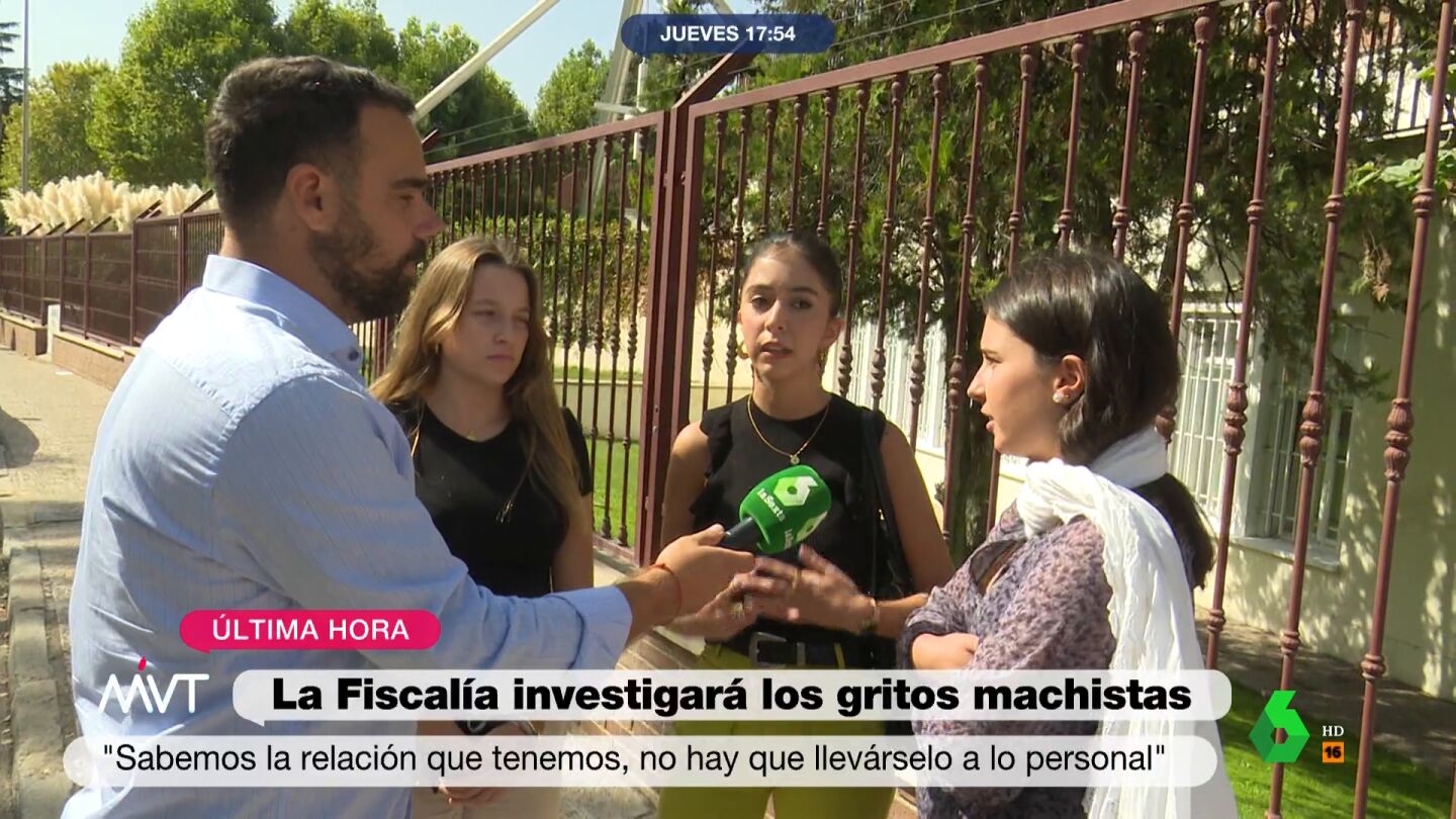 Desde que se dieran a conocer los cánticos misóginos que se llevaron a cabo recientemente en el Colegio Mayor Elías Ahuja de Madrid, no ha habido manera alguna hasta la fecha de hablar con los protagonistas de esos lamentables gritos. No obstante, en laSexta sí hemos podido preguntar a las destinatarias de estos mensajes machistas cómo han vivido esta acción. Son algunas de las estudiantes del colegio mayor femenino situado frente al Elías Ahuja, el Santa Mónica. Y la respuesta ha sido cuanto menos sorprendente: han lanzado gritos de apoyo a sus compañeros y han restado importancia a lo sucedido.