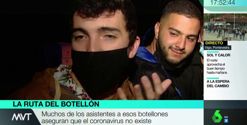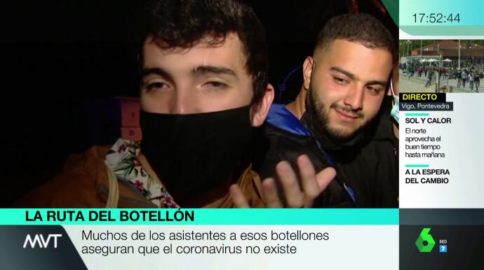 laSexta ha sido testigo de muchas de estas fiestas callejeras. Concretamente en Barcelona, la policía ha tenido que desalojar a 16.000 personas durante el fin de semana,y algunas de ellas se empeñan en justificar su comportamiento. "No necesito la mascarilla porque el aire no está contaminado", asegura una joven a las cámaras. Otro apunta al derecho a la "libertad de reunión" para explicar por qué hace botellón en la calle.