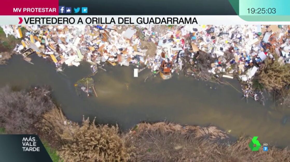 Miguel Aguado, consultor ambiental en B-Leaf, ha explicado los riesgos para el medioambiente y para la salud que suponen estos residuos, amontonados a orillas del río Guadarrama.