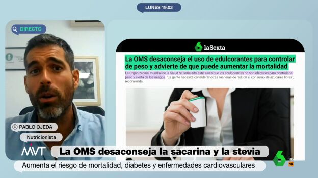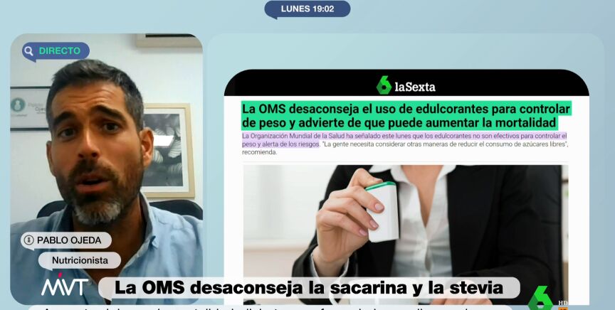 Pablo Ojeda, nutricionista, ha hablado sobre la advertencia de la OMS acerca del uso de edulcorantes para controlar de peso, y ha coincidido en que "no es necesaria la sacarina ni la stevia para ello". "Al final, de lo que se trata aquí es bajar poco a poco el umbral del dulzor. Sobre todo, hay que hacer un uso responsable", ha defendido, al tiempo que ha afirmado que "no hay que prohibir, pero sí convertir lo extraordinario en extraordinario y lo ordinario en ordinario, pero es que hemos convertido lo extraordinario en ordinario".