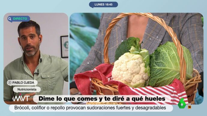 Pablo Ojeda deja atónita a Cristina Pardo al contarle que si hervimos estas verduras en leche podemos eliminar sus malos olores. "No te creo", afirma sorprendida la presentadora. Como cuenta el nutricionista, este azufre también puede provocar halitosis.