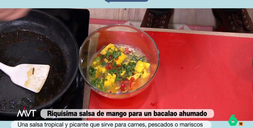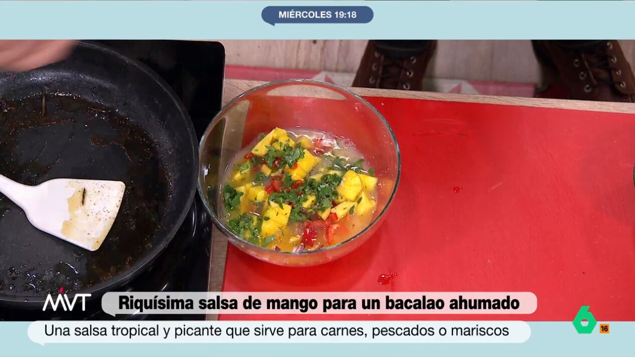 Para prepararlo, solo necesitas mango, pimiento rojo, chile picante, cilantro, zumo de naranja y de limón. Todos los ingredientes se colocan en un bol para mezclarlos. Una vez reunidos, el nutricionista explica que "lo vamos a mezclar con un poco de comino y sal". Poco a poco, se va añadiendo el jugo de limón y de naranja mientras se remueve continuamente.