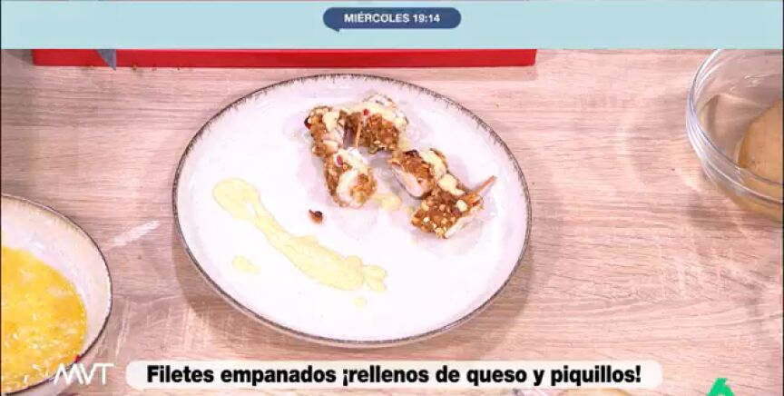 Pablo Ojeda versiona los clásicos filetes empanados: relleno de queso y piquillos y con quicos en vez de pan