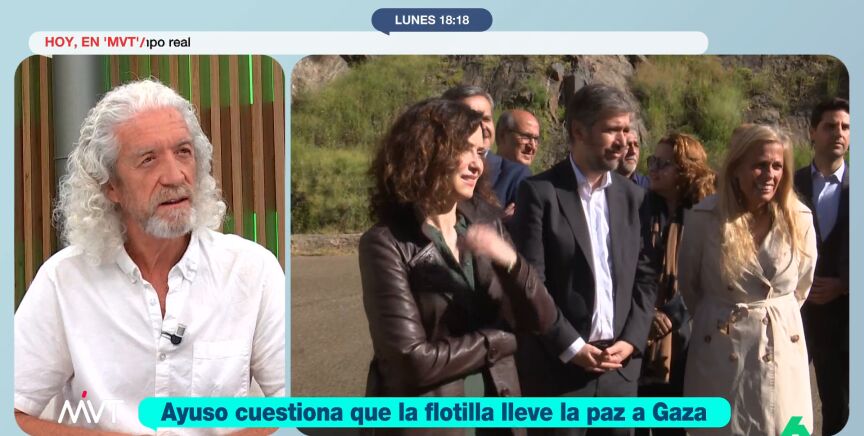 Néstor Prieto, periodista a bordo de la flotilla, asegura que no conocía los "motes" que les ha dedicado Ayuso y le recuerda que era "una misión humanitaria no violenta": "Si no querían este tipo de experimentos, que abran un corredor humanitario", afirma rotundo.