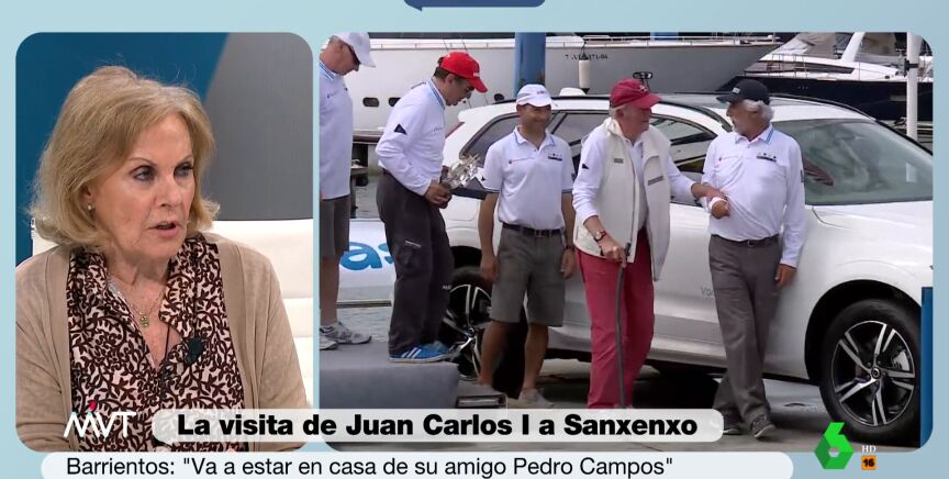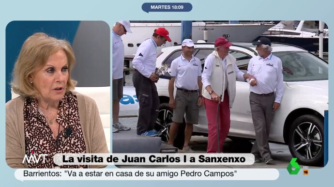 "Por las imágenes que he visto de otros años, ahora tiene movilidad y mucho mejor aspecto", comenta Barrientos, que muestra sus dudas con respecto a que Zarzuela se entere por los medios de comunicación de la agenda del emérito.
