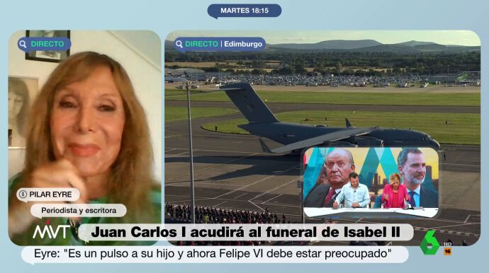 Pilar Eyre ha asegurado en Más Vale Tarde que "si hay una imagen de los reyes eméritos junto a Felipe VI y Letizia en amor y compañía" durante el funeral de Isabel II, "la mayoría de los españoles va a pensar que se les está engañando, que todo lo que ha pasado hasta ahora es un cuento chino".
