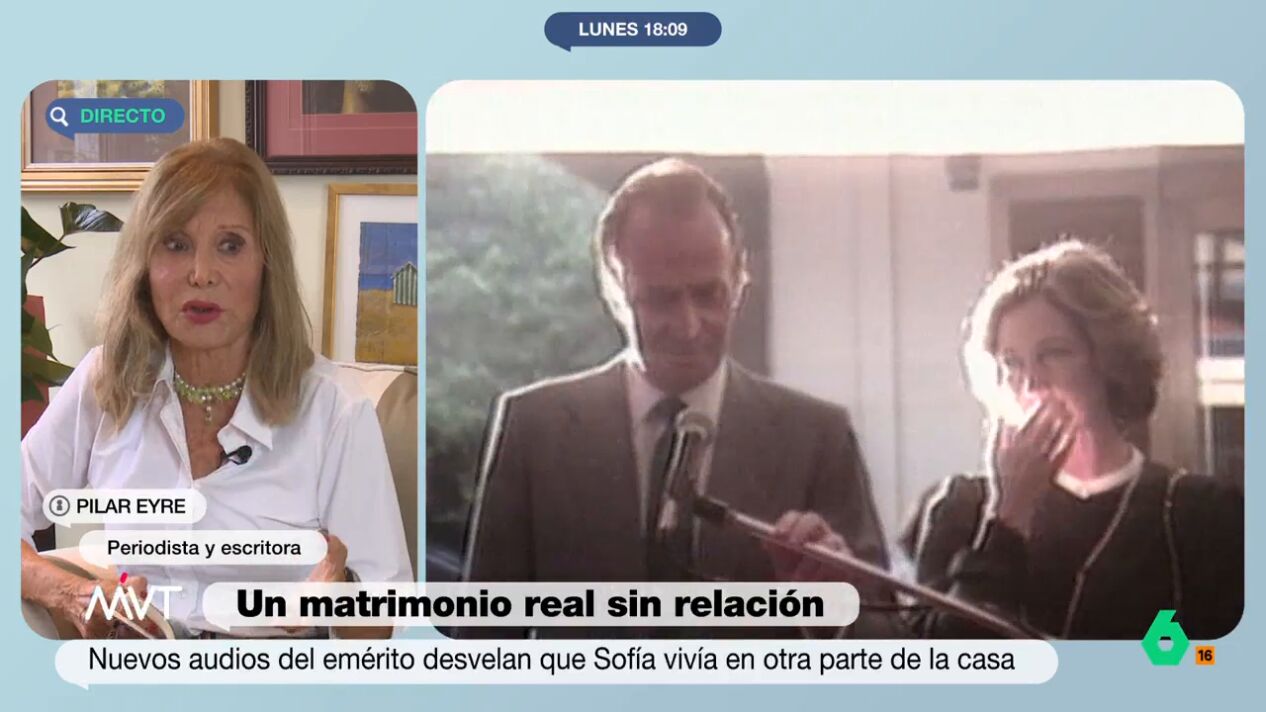 Preguntada en Más Vale Tarde sobrela "beatificación" que se está haciendo a la reina emérita en estos momentos por mostrarse en todo momento callada y profesional, en un primer momento Eyre ha querido aclara que "la reina no es una anciana de 150 años, por lo que no tiene que tener una mentalidad de principios del siglo XX que tienes que aguantar todo".