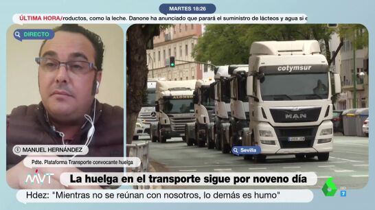 LaPlataforma Nacional en Defensa del Sector del Transporte por Carretera, organización convocante de los paros de estos últimos días, insiste en que el Ministerio de Transportes debería incluirles en las negociaciones. Lo ha defendido su presidente, Manuel Hernández, en Más Vale Tarde, donde ha recordado que la organización que sí se sienta con el Ministerio, el Comité Nacional de Transporte por Carretera, es la patronal.