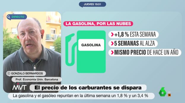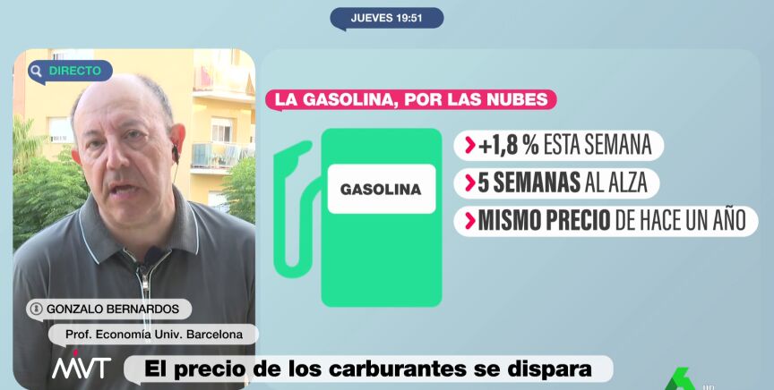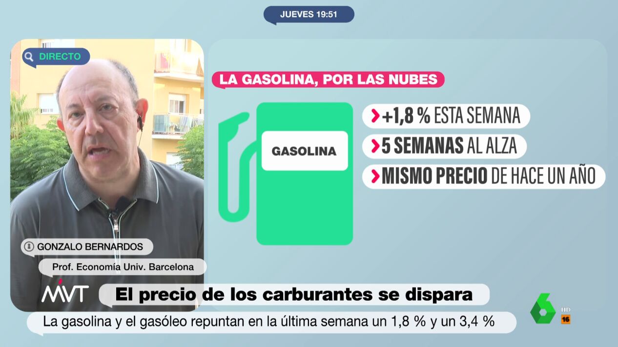 El profesor de Economía en la Universidad de Barcelona, Gonzalo Bernardos, ve el repunte de los precios de los carburantes como "una tormenta de verano" debido a dos circunstancias, según ha analizado en el programa Más Vale Tarde.