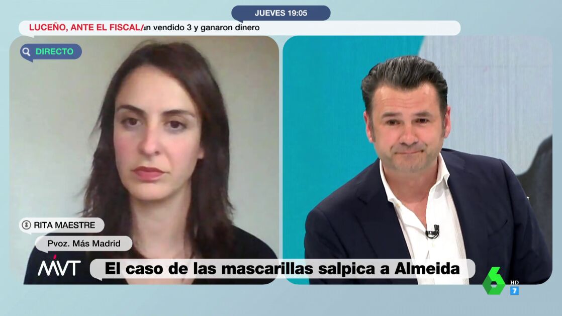 Rita Maestre, portavoz de Más Madrid en el Ayuntamiento, ha respondido en Más Vale Tarde a José Luis Martínez-Almeida, quien se ha definido este jueves como la "víctima" en el escándalo de las mascarillas. Maestre ha respondido al alcalde de Madrid defendiendo que "los hechos con claros", que "la "única víctima de este asunto es el pueblo de Madrid, que ha perdido seis millones de euros robados por dos sujetos con ninguna moral". En este sentido, Maestre ha lamentado que "el pueblo de Madrid también ha perdido la capacidad de tener un alcalde o un ayuntamiento que defienda sus intereses".