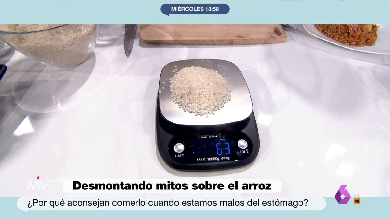 Una de las dudas más repetidas por el público es si se puede cenar arroz. Aunque Ojeda reconoce que es "mejor para comer que para cenar", busca desmontar "un gran mito" que también hay alrededor de la pasta, por ejemplo, explicando qué son los hidratos de carbono y cómo funcionan en nuestro organismo.