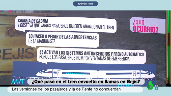 ¿Qué sucedió para que untren de pasajeros entrara de lleno en el incendio desatado en Bejís? Dos días después de que trascendieran las imágenes de los pasajeros aterrados, las dudas siguen y las versiones de Renfe y de los pasajeros no concuerdan.