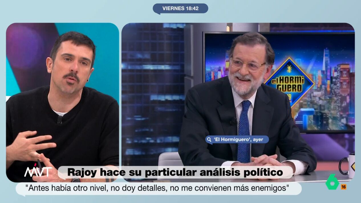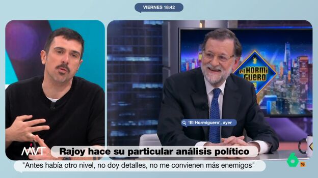 El colaborador pone la nota discordante y recuerda las sombras de Mariano Rajoy durante su legislatura, aunque eso no quita que en El Hormiguero estuviera "muy simpático" y de que sea "una persona brillante y muy inteligente".