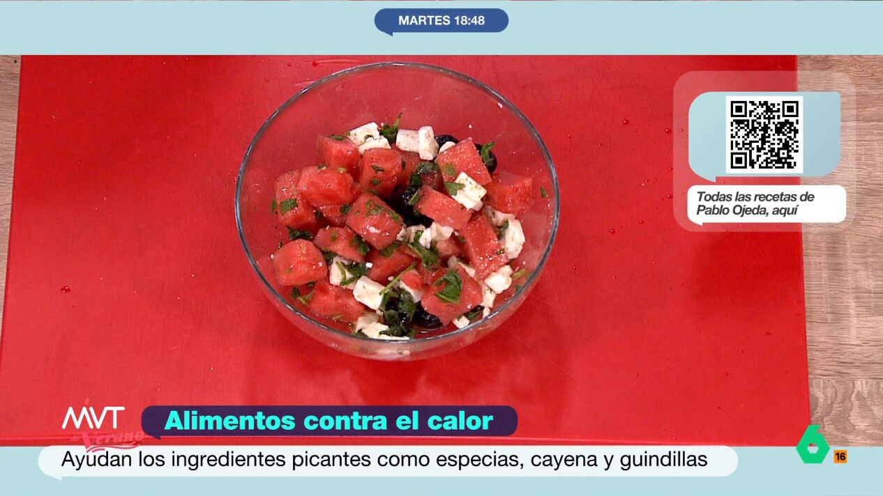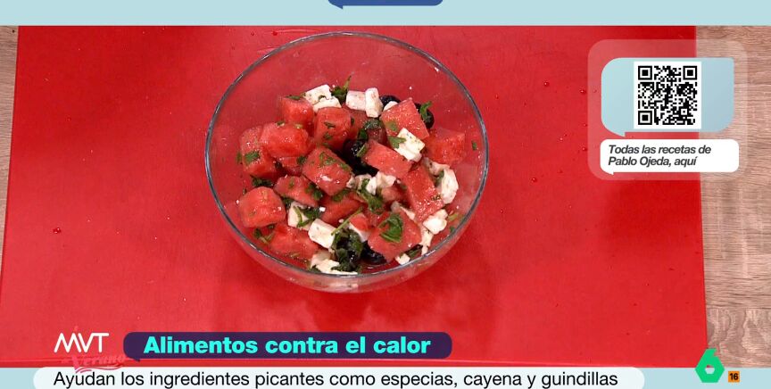 Junto a ellos está el pepino, otro alimento top para hidratarse en verano, con el que se puede preparar un buen gazpacho, una ingente variedad de ensaladas y otros platos fresquitos. Entre ellos, la ensalada que Pablo Ojeda nos trae, a puntito de terminar una de las olas de calor más largas de la historia: