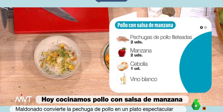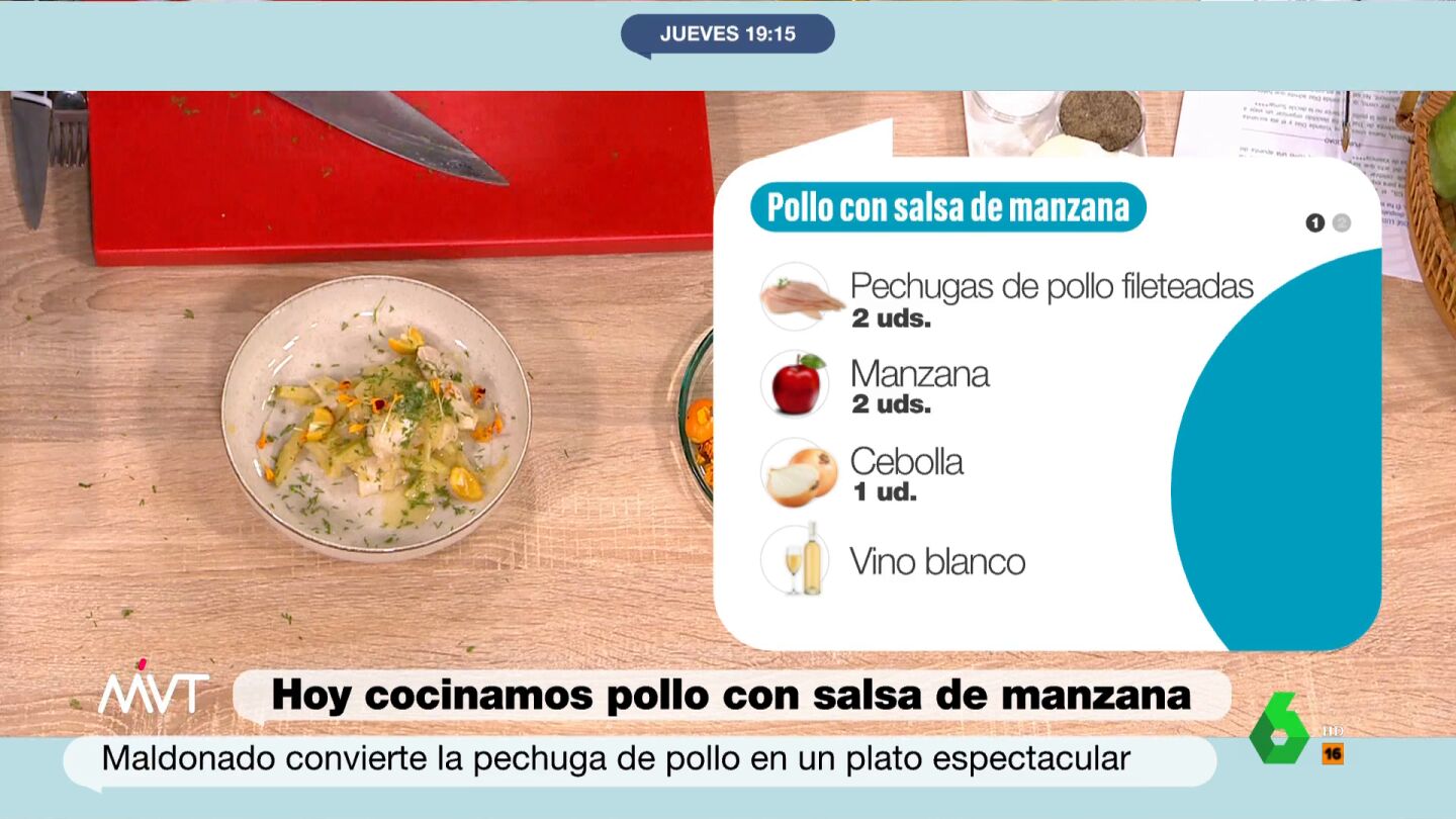 El chef Carlos Maldonado trae a Más Vale Tarde una receta con ingredientes muy sencillos, que todos tenemos en casa, pero con un toque especial y un resultado espectacular: pollo con salsa de manzana. Para elaborar este plato, necesitaremos los siguientes ingredientes: