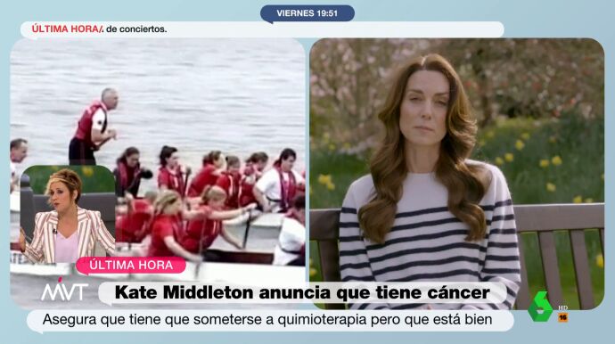 La periodista Cristina Pardo ha comentado en Más Vale Tarde que, viendo imágenes antiguas de Kate, en el vídeo que ha compartido la Casa Real británica, "se la ve abatida físicamente". "Se ve que es una persona que está atravesando un bache", ha añadido.