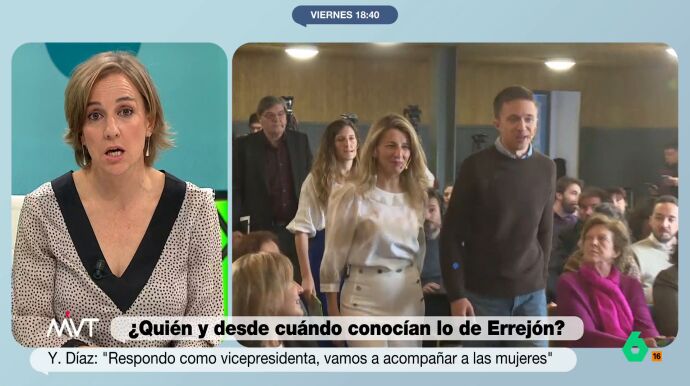 La exdiputada y excompañera de Íñigo Errejón en Podemos Tania Sánchez ha analizado en Más Vale Tarde la reacción de Sumar, tras la dimisión de su exportavoz, precipitada por las acusaciones de violencia machista. Sánchez ha querido destacar "la valentía de Elisabeth Duval, por más que en unas ocasiones acierta más y otras menos en lo que dice, pero me parece que por lo menos tiene la valentía de salir a decir las cosas, lo peor que puede hacer una persona es esconderse de las cosas"