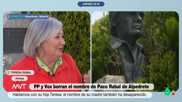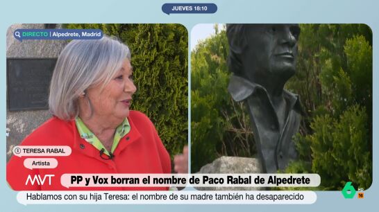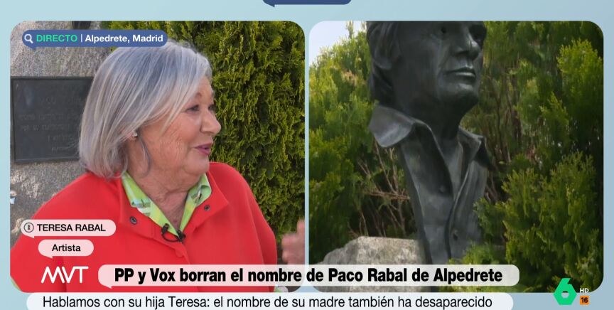 Teresa Rabal, la hija de Paco Rabal y Asunción Balaguer, ha expresado este jueves a Más Vale Tarde que esta decisión es "una auténtica tropelía". "Echen marcha atrás, mi padre y mi madre no han matado a nadie. No son terroristas", ha pedido. Ha contado que primera que se fue "a vivir a Alpedrete fue ella en el año 73". "Mis padres venían en verano a mi casa, se quedaban temporadas. Y al final decidieron comprar un terreno al lado del mío y se hicieron una casa y aquí pasaron sus últimos años", ha contado.