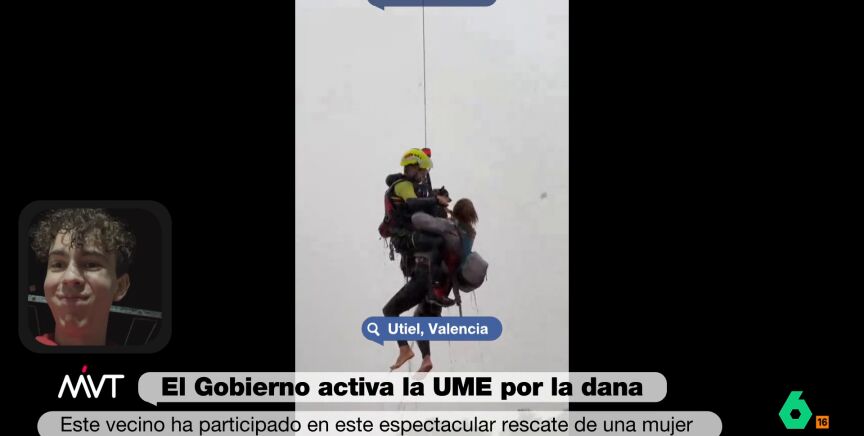 Una mujer ha sido la protagonista de un agónico rescate en Utiel (Valencia). Se quedó atrapada en su casa por la riada provocada por la DANA que está golpeando el este peninsular, y tuvo que ser rescatada por un helicóptero de la UME.