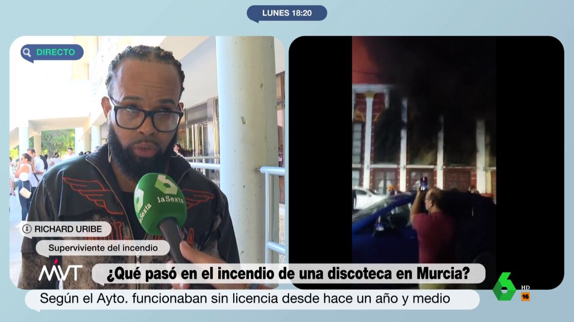 La tragedia de las discotecas de Murcia supuso un infierno también para quienes lograron sobrevivir a las llamas. La última persona en salir de la sala fue Richard Uribe, que esa noche tocaba en la sala. Cuando salió del baño, vio las luces del recinto apagadas y escuchó a la gente decir "hay un incendio".