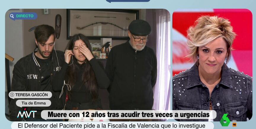 Teresa Gascón, tía de Emma, laniña de 12 años que murió a causa de una peritonitis sin diagnosticar, ha criticado que los médicos no les hicieron caso cuando informaron de que existían antecedentes de apendicitis en la familia: "Nos dijeron que era difícil".
