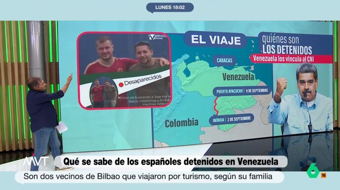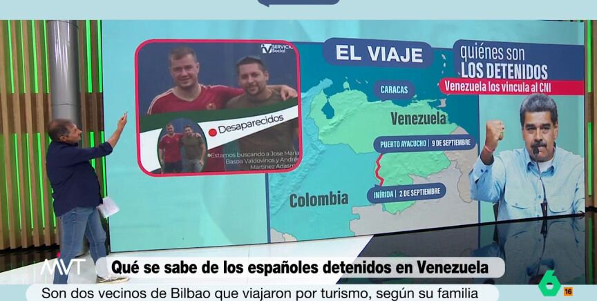 Todavía se desconoce la condición en la que se encuentran los dos españoles detenidos por el régimen de Nicolás Maduro en Venezuela. Andrés Martínez Adasme, desempleado de 32 años, y José María Basoa, técnico instalador de calefacción de 35 años, fueron acusados de ser espías del CNI encargados de llevar una operación contra Maduro, algo desmentido por el Ministerio de Exteriores y por las familias de los hombres, ambos procedentes de Bilbao.