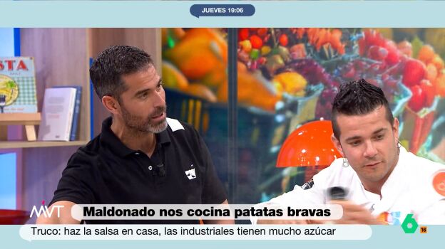 Carlos Maldonado, el chef con Estrella Michelin, cocina en Más Vale Tarde patatas bravas, la tapa ideal para el picoteo de este verano. Aunque las patatas son muy agradecidas cuando las acompañamos con cualquier tipo de salsa, como "la mayonesa, el alioli, el kétchup o la propia salsa barbacoa", detalla Pablo Ojeda, quien recomienda que, en vez de comprarlas, las cocinemos en casa porque "las industriales tienen mucho azúcar".