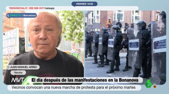 Juanma es uno de los vecinos del barrio de Bonanova, en Barcelona, que acudió a la manifestación de este jueves contra la okupación. Según ha afirmado en Más Vale Tarde, "siempre se ha convivido con ellos bien, pero a partir de que el 23 de marzo no se consiguió echarlos y se demoró la orden, ellos han estado más activos". "Es posible que se hayan sentido provocados", ha añadido.