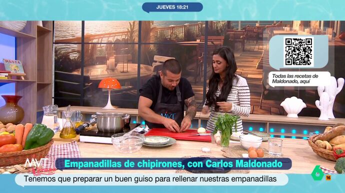 Carlos Maldonado enseña a María Lamela a picar perejil: "La tela la corto bien"