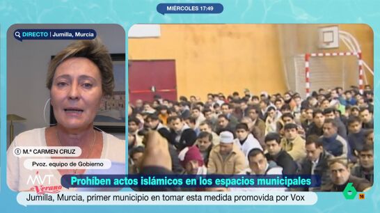 En el municipio de Jumilla, en Murcia, ha salido adelante una moción, planteada por el único edil de Vox en el pueblo, para prohibir la celebración de actos islámicos en los espacios deportivos de la localidad. Más Vale Tarde conecta con Mª Carmen Cruz, portavoz del equipo de gobierno de Jumilla, para aclarar la noticia.