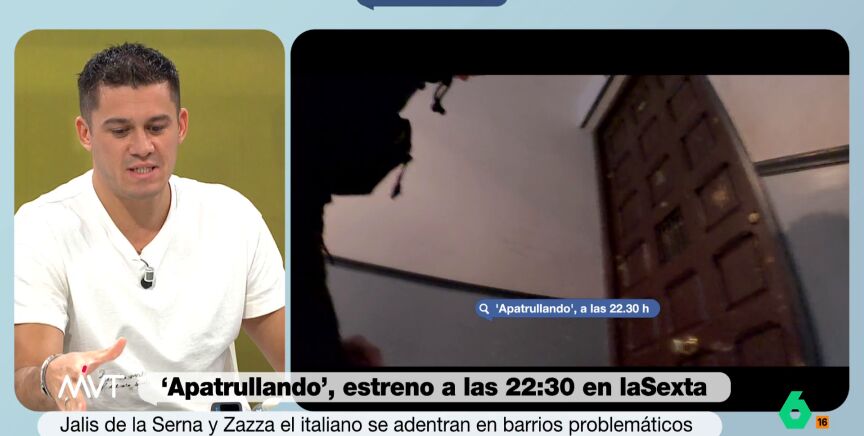 laSexta estrena nueva temporada del programa Apatrullando. Jalis de la Serna y Zazza el Italiano serán los protagonistas de una sección que narrará la realidad de varias zonas conflictivas de España con un primer capítulo en Madrid, Barcelona y Bilbao. Los reporteros recorrerán las calles de estos lugares únicos y recogerán los testimonios de las personas que viven allí. El dúo más esperado vuelve esta noche para ver el ambiente que se vive en las calles de Lavapiés, El Raval y San Francisco.