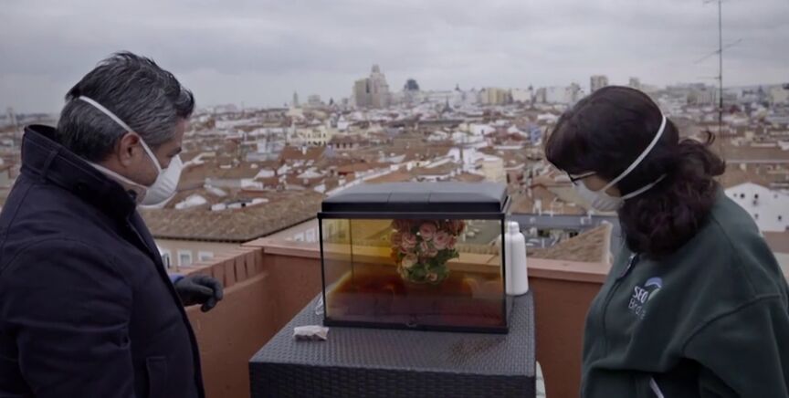 Después de varios minutos dejando actuar al humo que emiten los coches, calefacciones... Natural comprueba qué es lo que les pasa a los gorriones que están expuestos a esta contaminación atmosférica al abrir la pecera y ver la planta: "Está muerta", afirma la ambientóloga.
