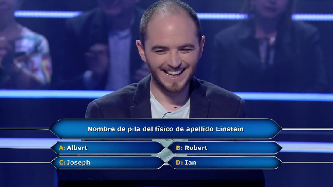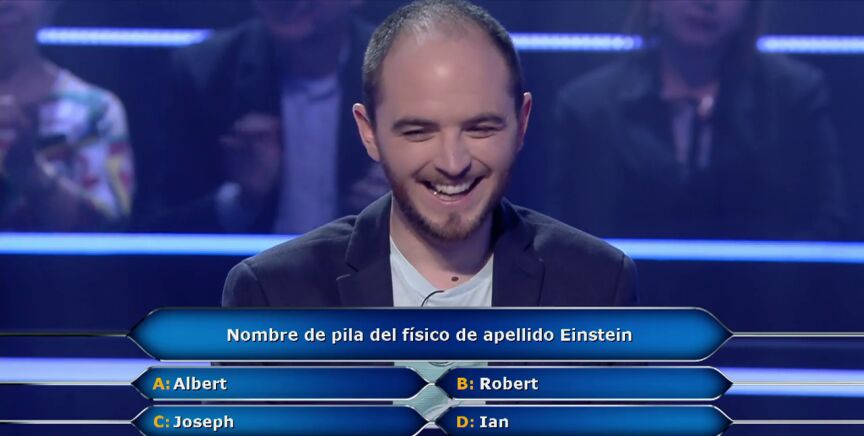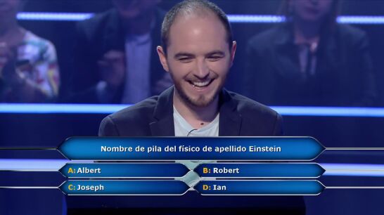 Este concursante de ¿Quién quiere ser millonario? llega a la pregunta tres y ya está claro que le gusta el humor y la guasa. Es preguntado por el nombre de Einstein y no duda en hacer un chiste antes de responder.