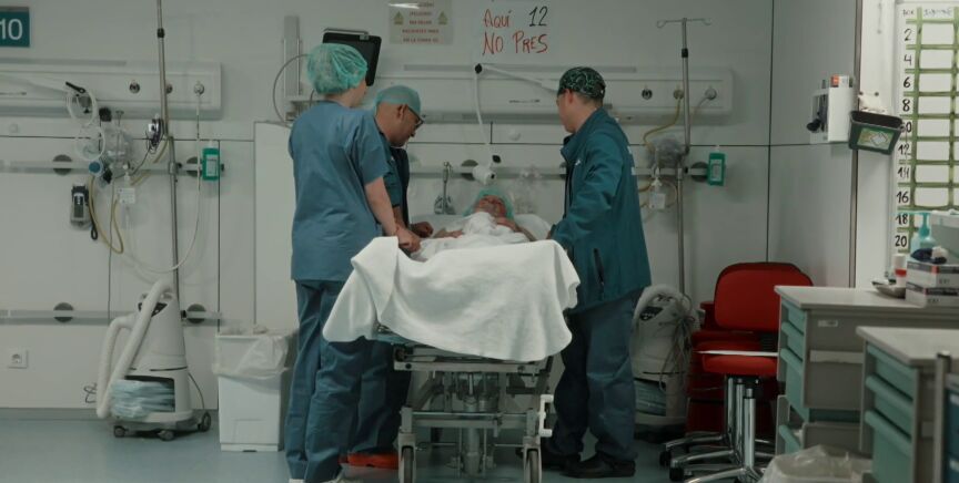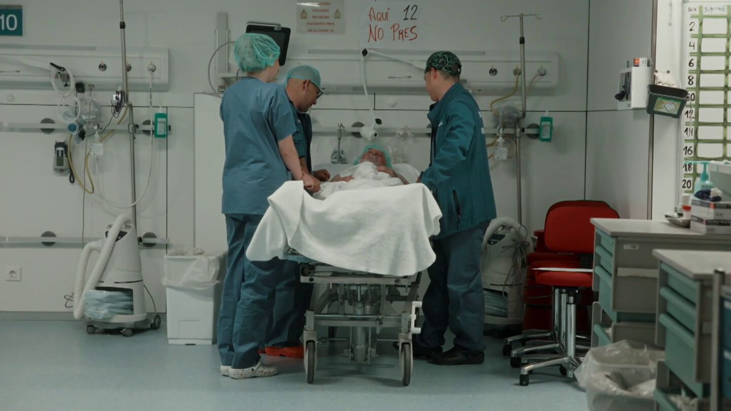 Salvados acompaña, desde la distancia, al paciente en su ingreso. "Ya sabemos que los pulmones son buenos. Sobre las 12:00 bajaremos a quirófano", le comunican al señor que espera ya en camilla para someterse a un trasplante bipulmonar. Los nervios, reconoce, están a flor de piel; sabe que puede que nunca despierte tras la operación. "Soy el doctor Jáuregui, mi compañero es el doctor Vivas, y mi compañera la doctora Otero", se presenta el equipo ante él. "Vamos a hablar con tu mujer para que esté tranquila", le anuncia.