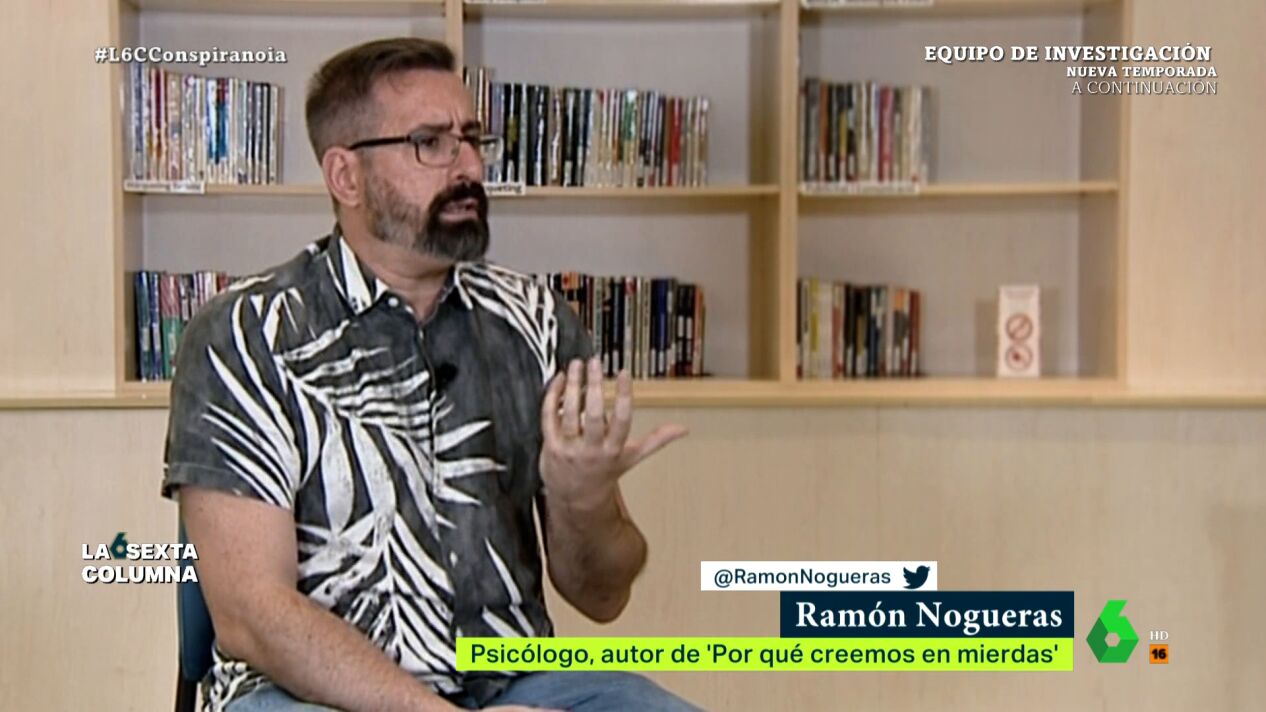 Ramón Nogueras ha analizado en laSexta Columna la razón por la que muchas personas aceptan alocadas teorías sin ninguna base empírica o científica, y cómo afecta a la reproducción de bulos e informaciones falsas.