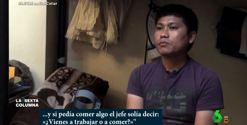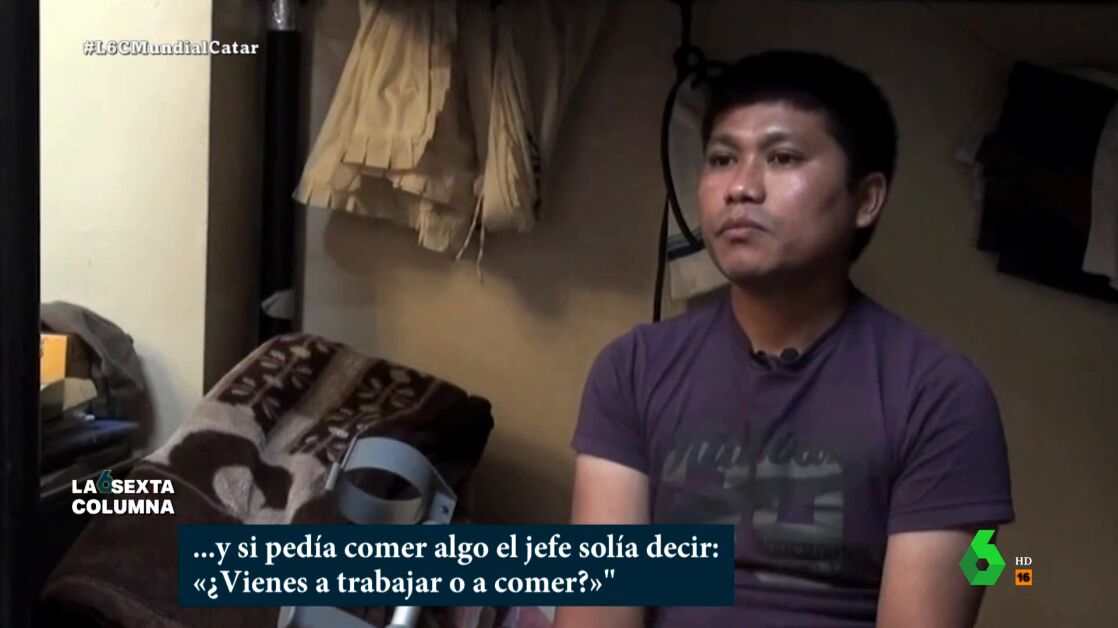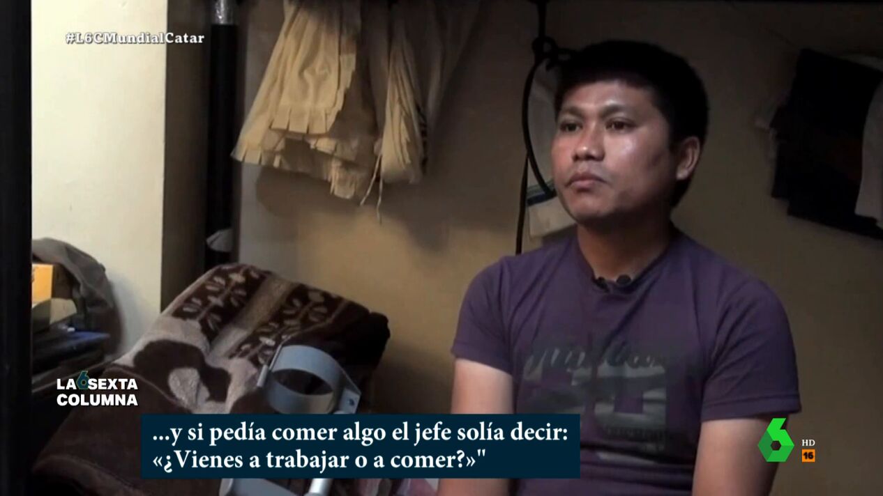 En el vídeo sobre estas líneas, laSexta Columna recoge testimonios de algunos trabajadores, como el que explica que "trabajaba de cuatro de la mañana a once de la noche y si pedía comer algo el jefe solía decir '¿Vienes a trabajar o a comer?'". También muestra imágenes de cómo son los lugares en los que viven en condiciones pésimas y analiza las últimas reformas del régimen qatarí, que ante las críticas mejoró las condiciones laborales poniendo un salario mínimo de 226 euros al mes en un país con una renta per cápita de 60.000 euros.