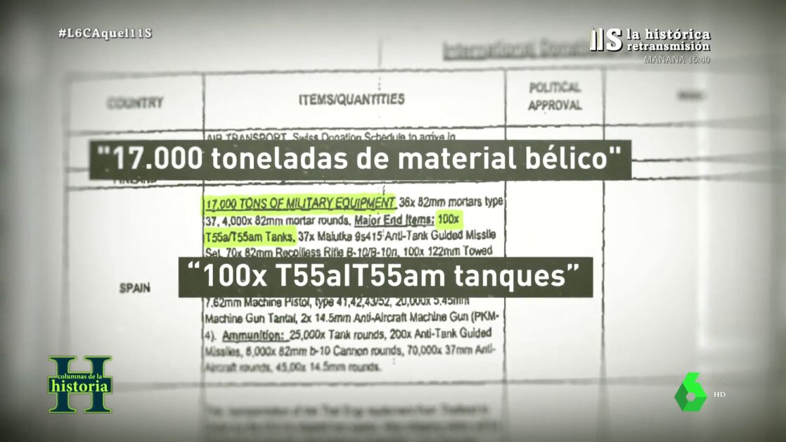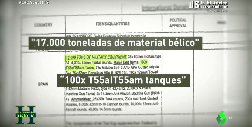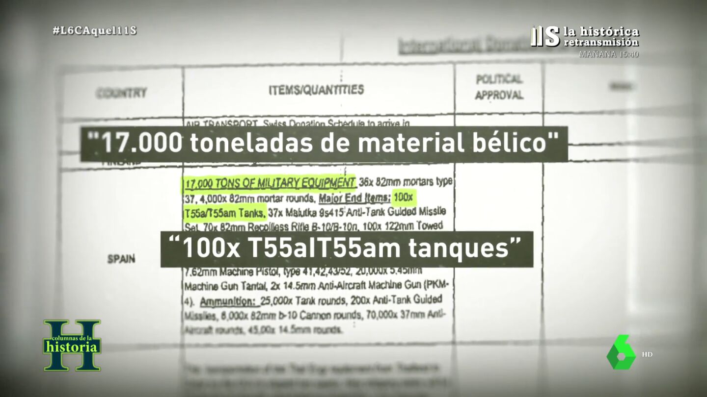 La cifra podría ser mayor porque, según un informe desclasificado de EEUU, en 2003 España mandó 17.000 toneladas de material bélico, incluyendo 100 tanques, sin pasar por el Congreso.