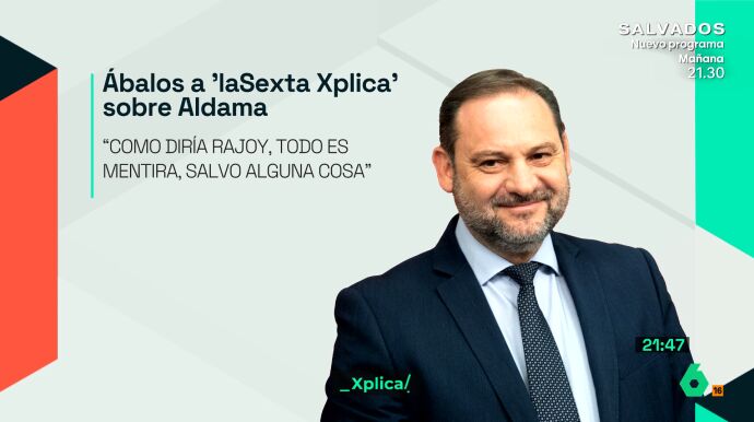 El exministro de Transportes ha mantenido una conversación con José Yélamo, presentador de laSexta Xplica, y ha asegurado parafraseando a Mariano Rajoy que todo lo que ha declarado Aldama "es mentira, salvo alguna cosa".