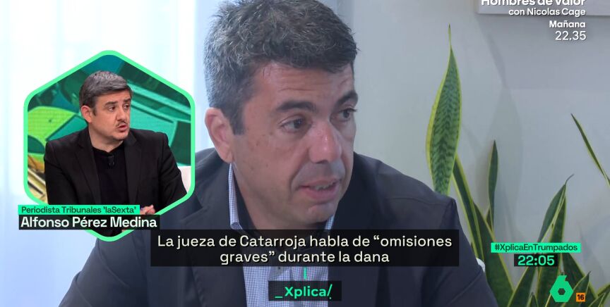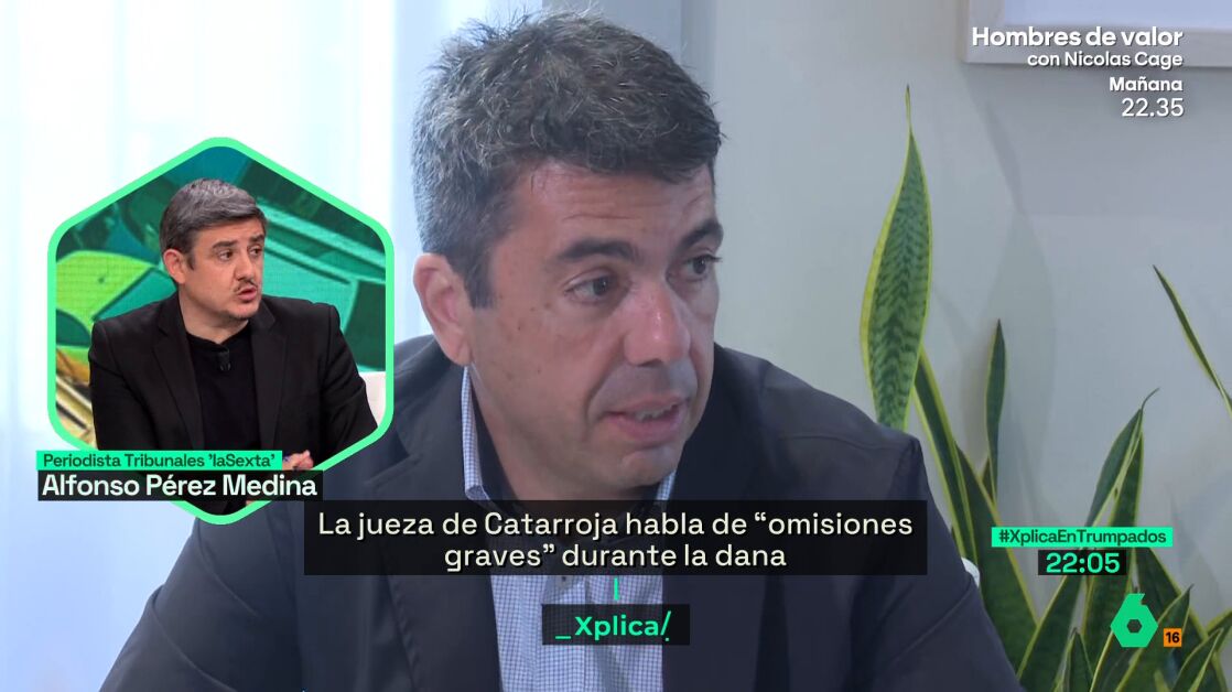 El jefe de Tribunales de laSexta, Alfonso Pérez Medina, explicaba este sábado en Xplica la estrategia que podría estar siguiendo la jueza de Catarroja, Nuria Ruiz Tobarra, para imputar a Carlos Mazón. Lo haría en la causa que trata de dirimir responsabilidades de lo sucedido en la Horta Sud de Valencia el pasado 29 de octubre.