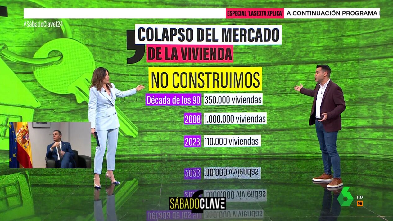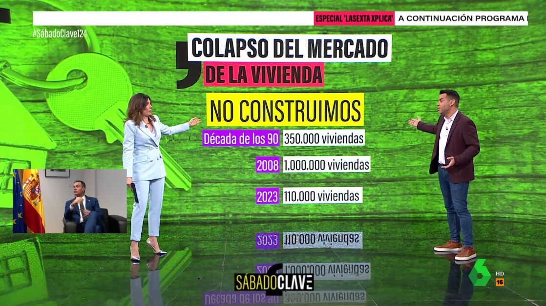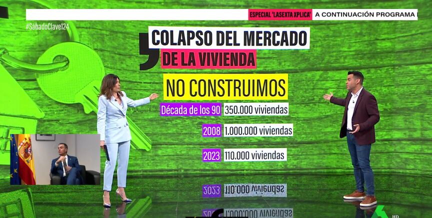 En España vivimos un colapso en la oferta inmobiliaria, según ha determinado un informe, que asegura que "no hay vivienda para tanta gente". José María Camarero da las claves en Sábado Clave sobre el problema de la vivienda: "En parte porque no construimos. Vivimos en una especie de resaca de la gran burbuja inmobiliaria que vivimos hace 16 años".