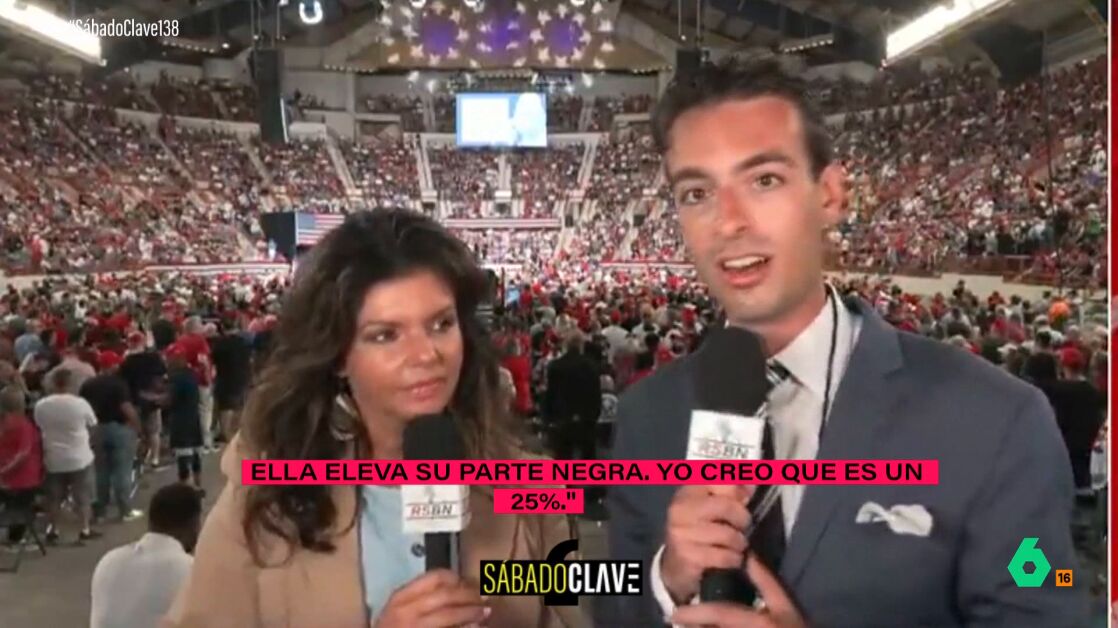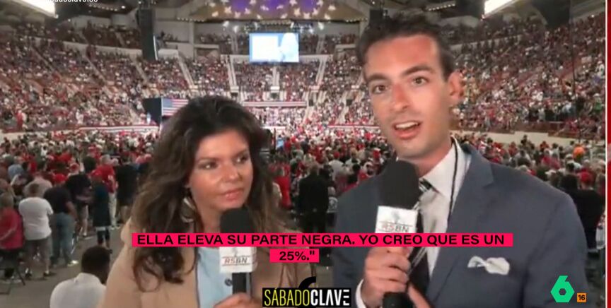En él se puede ver cómo el presentador pone en duda la identidad de Kamala: "Ella hacía campaña siendo nativa americana, pero ahora, de repente, da un giro de 180º y eleva su parte negra. Yo creo que es un 25%", dice. "Esto del 25% es tremendo", reacciona Lobato, quien no duda en llamar "cretino" al periodista afín a Trump, ya que este comentario es propio de los "tiempos de las leyes raciales de Luisana de siglos atrás, cando se medía la pureza de raza en porcentaje".