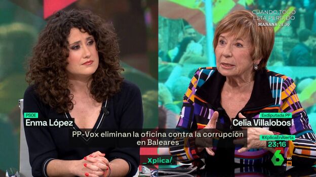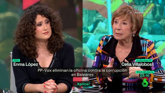 Durante el debate que Celia Villalobos y la socialista, Enma López, mantienen en laSexta Xplica, la popular sale en defensa de su partido: "Al PP no nos gusta Vox, en absoluto", se muestra tajante, y compara las coaliciones de PP y Vox con las del PSOE cuando "gobernaba con Podemos y ahora con Sumar".