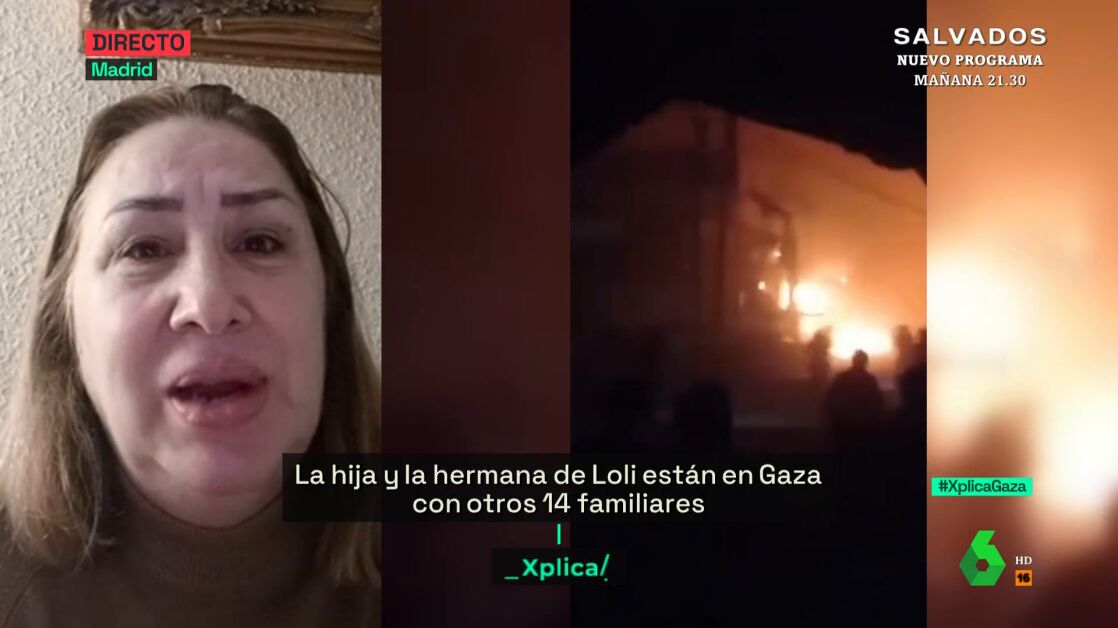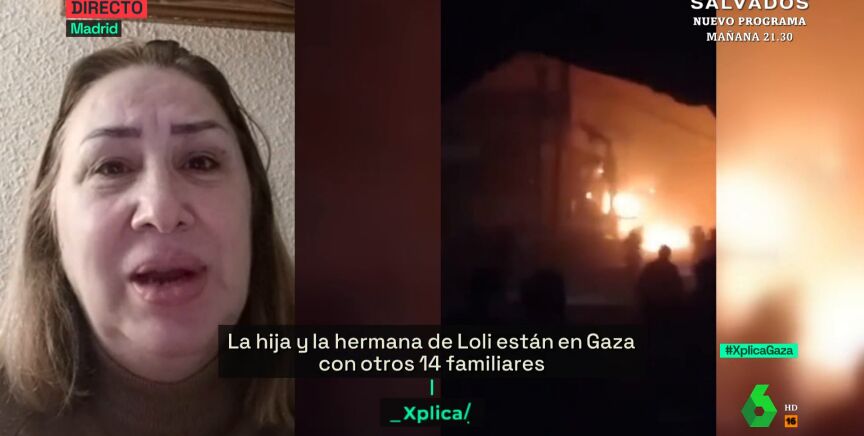 Loli está en Madrid, pero su hija y su hermana se encuentran en Gaza junto a 14 familiares más. Tiene tres nietos de 10, 15 y 16 años que "están muy cerca de la zona donde han bombardeado el mercado", según ha relatado en laSexta Xplica.