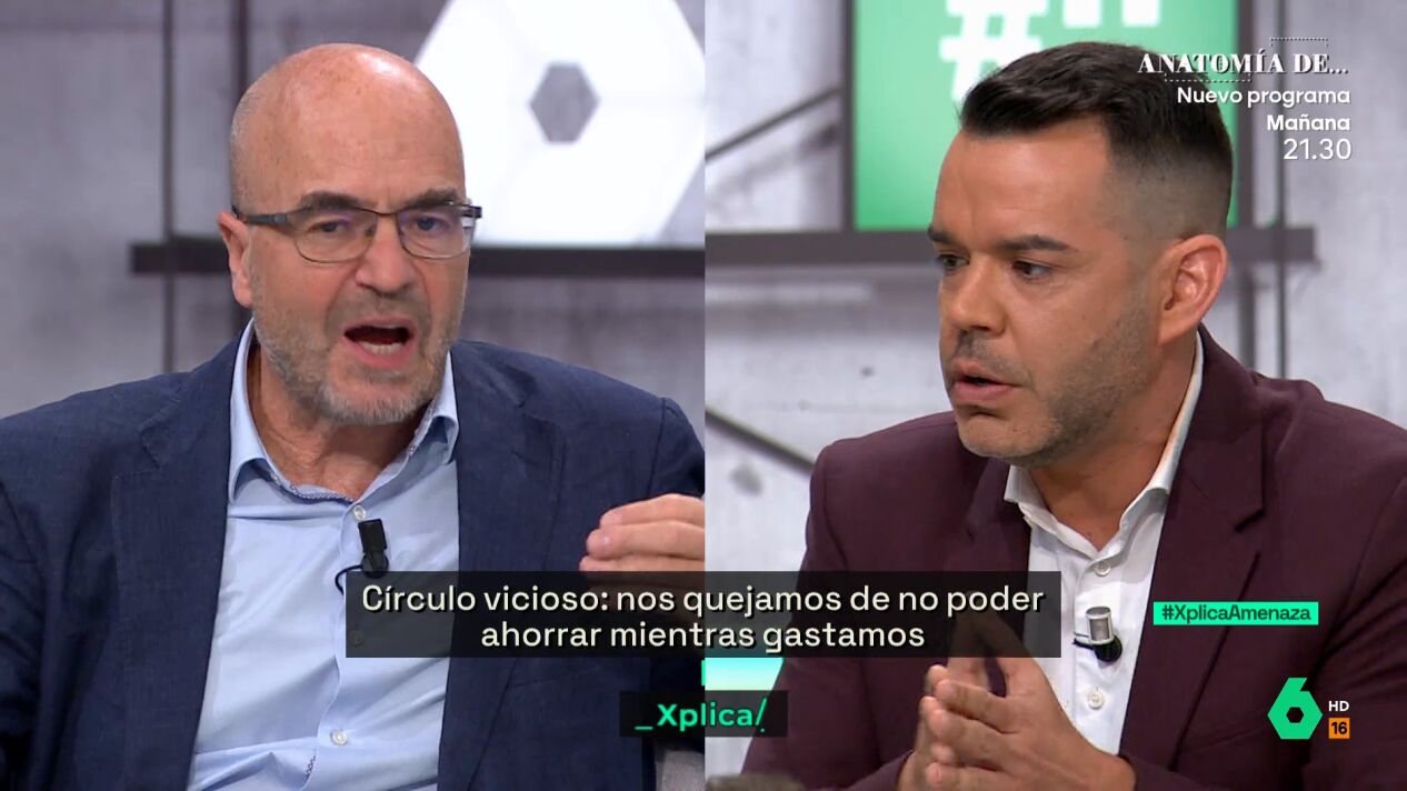 José María Camarero responde en laSexta Xplica a su compañero Javier Díaz-Giménez, quien sugiere a aquellas personas que, lo poco que ahorren, lo inviertan en Bolsa. "Siempre he defendido una cultura del ahorro, pero no digamos que con diez euros van a conseguir una rentabilidad del 5% cuando llevamos dos años con los tipos altísimos", dice el periodista económico, quien recuerda que los bancos, ahora mismo, "apenas dan un 0,6".