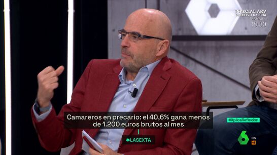 El 40,6% de los camareros gana menos de 1.200 euros brutos al mes, por lo que se encuentran en una situación precaria. Ante estos datos, en laSexta Xplica debaten sobre si la gente no quiere trabajar en hostelería o si se decantan por otros sectores porque no están dispuestos a asumir ciertas cosas porque "las condiciones son malas por definición".