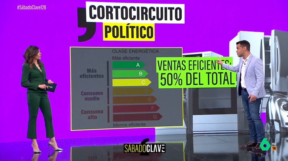 Con la ayuda de José María Camarero, periodista económico, se comprueba que la mitad de los electrodomésticos que se venden ya son eficientes, dentro de los rangos de valoración entre A y C (llega hasta la G).