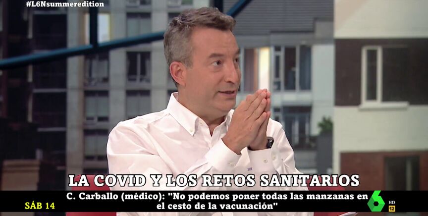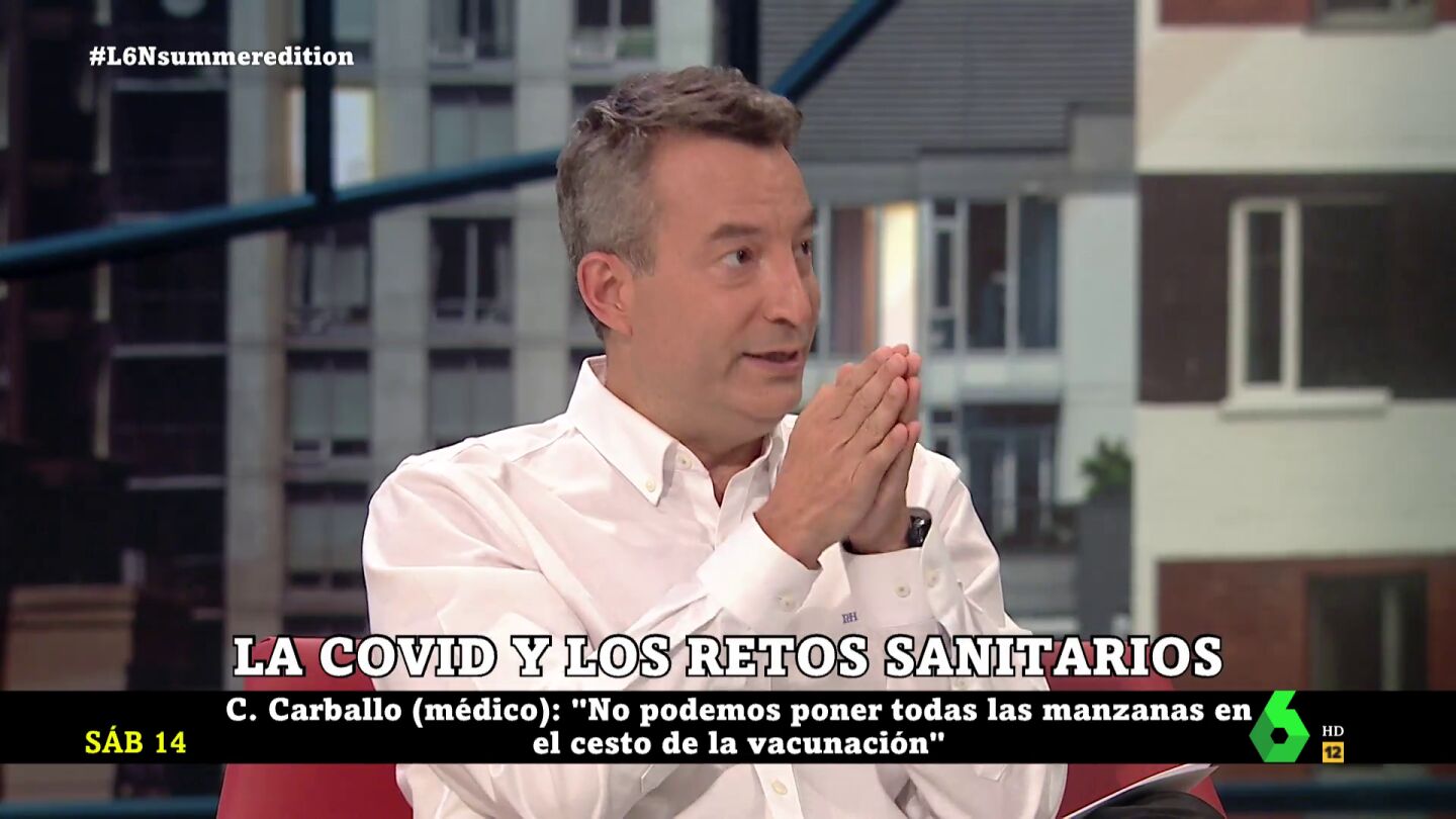 "No podemos poner todas las manzanas en la cesta de vacunación". Es la advertencia en la que el doctor César Carballo insiste en laSexta Noche, donde apunta que, aunque en estos momentos "el ritmo de vacunación no es malo", la variante Delta "nos ha cambiado totalmente el tablero de juego".